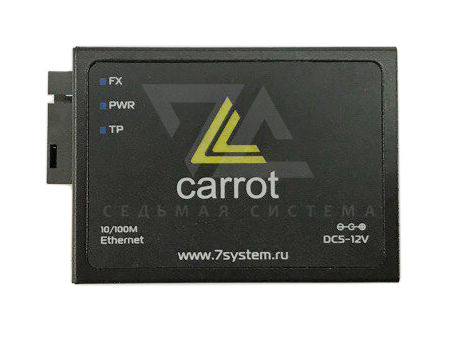 Медиаконвертер 10/100Base-T/100Base-FX Carrot, 1310/1550, 20 км соответствует стандартам IEEE 802.3. Предназначен для преобразования сигналов между 10/100 Base-TX/100 Base Fx и оптическим сигналом(витая пара и оптический кабель). Оптический разъем SC.