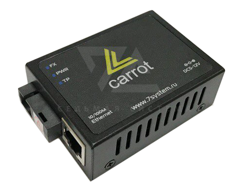 Медиаконвертер 10/100Base-T/100Base-FX Carrot, 1550/1310, 20 км соответствует стандартам IEEE 802.3. Предназначен для преобразования сигналов между 10/100 Base-TX/100 Base Fx и оптическим сигналом (витая пара и оптический кабель). Оптический разъем SC.