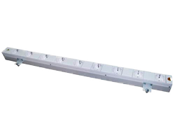 Блок розеток состоит из металлического основания с вмонтированными в него электрическими розетками и функциональной части, обеспечивающей ввод питающего напряжения. Сборная конструкция позволяет заменить вышедшую из строя розетку без замены всей токопроводящей шины.