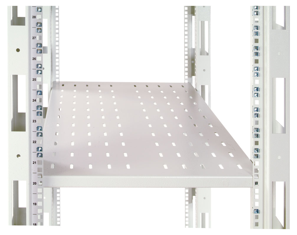 Полки серии СВ предназначены для размещения нестандартного оборудования. Имеют четыре точки фиксации к вертикальным направляющим шкафов и открытых стоек. Для свободного прохождения охлаждающего воздуха полки имеют развитую перфорацию. Серия СВ-У имеет дополнительные ребра жесткости, что позволяет нести нагрузку до 100 кг. Полки поставляются индивидуальной полиэтиленовой упаковке. Цвет –RAL 7035 серый или черный RAL 9005.Статус: Под заказ