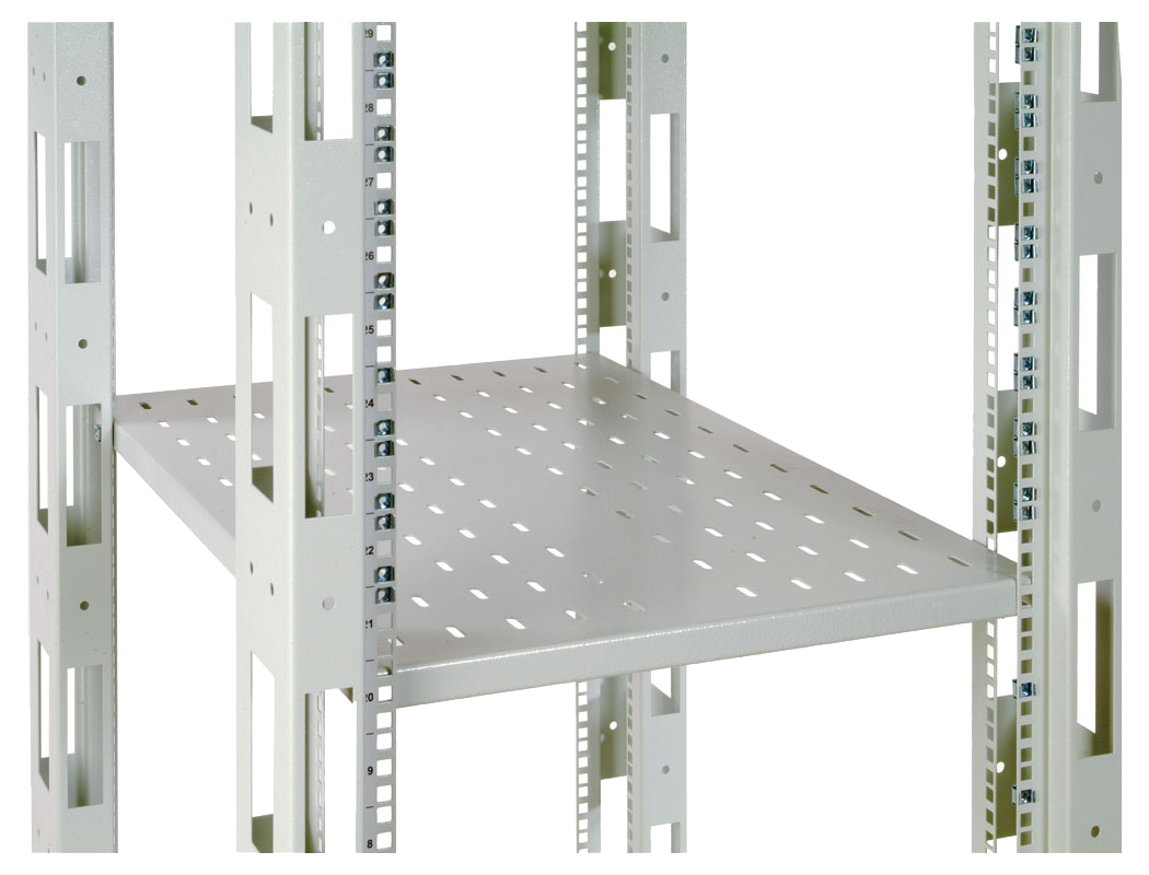 Для свободного прохождения охлаждающего воздуха полки имеют развитую перфорацию. Серия СВ-У имеет дополнительные ребра жесткости, что позволяет нести нагрузку до 100 кг. Полки поставляются индивидуальной полиэтиленовой упаковке с комплектом крепления.