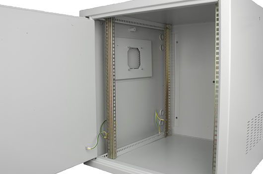 • Для установки оборудования шкаф снабжен 4 оцинковаными монтажными направляющими, что позволяет устанавливать в шкаф достаточно тяжелое и глубокое оборудование. Направляющие могут регулироваться по глубине. Все токопроводящие части шкафа заземлены между собой.