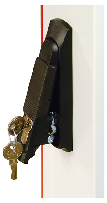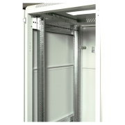 Стандартно шкафы комплектуются задней металлической стенкой, и тремя видами дверей: цельнометаллической, с тонированным ударопрочным стеклом, и дверью с перфорацией. Возможна комплектация двумя дверьми, исключающая заднюю стенку. В шкафах 18-38U, дверь фиксируется усиленным точечным замком, 42-47U ригельным. Двери имеют как правую, так и левую навеску.