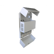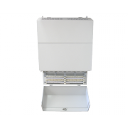- Внешняя оболочка шкафа состоит из 2-х откидных крышек (верхней и нижней) и центрального съемного кожуха. Верхняя крышка и центральный кожух имеют вентиляционные отверстия для отвода тепла. Фиксация верхней крышки происходит при запирании нижней крышки. Нижняя крышка снабжена замком