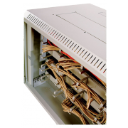 Возможна комплектация металлической дверью и дверью с тонированным ударопрочным стеклом. Возможна установка двери, как с правой, так и с левой стороны. Двери и боковые стенки фиксируются точечными замками. Перфорация обеспечивает хорошую вентиляцию установленного оборудования. В основание или крышу шкафа возможна установка вентиляторных модулей МВ-400-2. Для установки модуля демонтируется заглушка, и модуль фиксируется шестью винтами. Предусмотрены два кабельных ввода в верхней и нижней частях шкафа, размер – 95х40мм. Система заземления входит в стандартную комплектацию. Вертикальные направляющие регулируются по глубине. Возможна установка задней стенки. Настенный шкаф 19" ШРН-М поставляется в разобранном виде.
