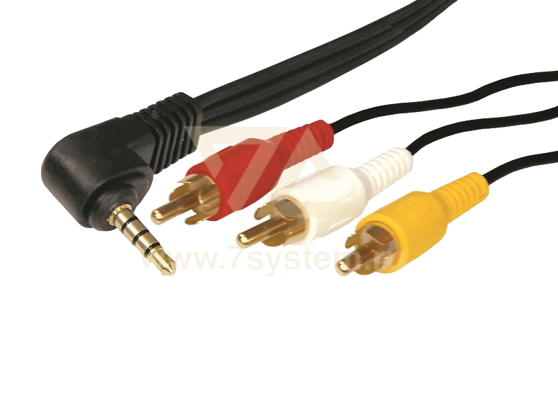 Предназначен для передачи аналогового видео и аудиосигнала и широко применяется для видео и аудиосистем. С одной стороны шнура располагается угловой штекер разъема 3.5мм 4C Plug, а с другой 3 штекера разъема RCA.Статус: В наличии