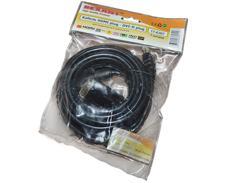 Шнур HDMI - DVI-D GOLD Rexant, с фильтром, 7 м