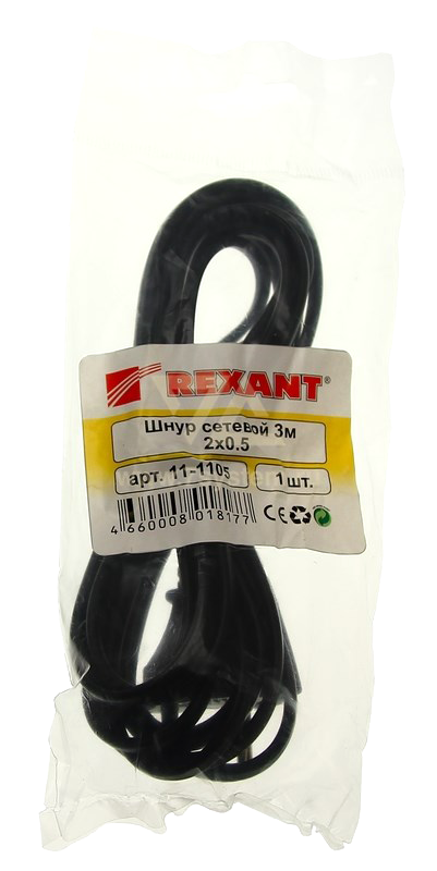 Шнур сетевой 2 x 0.5 мм Rexant, 3 м