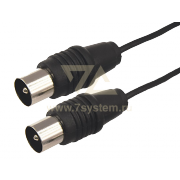 C обеих сторон шнура располагаются штекеры TV-разъема. Корпус разъемов выполнен из качественного, легкого и прочного пластика. Контакты никелированы и обеспечивают высокий уровень передачи сигнала к оборудованию. Цвет шнура – черный, а длина составляет 7 метров.