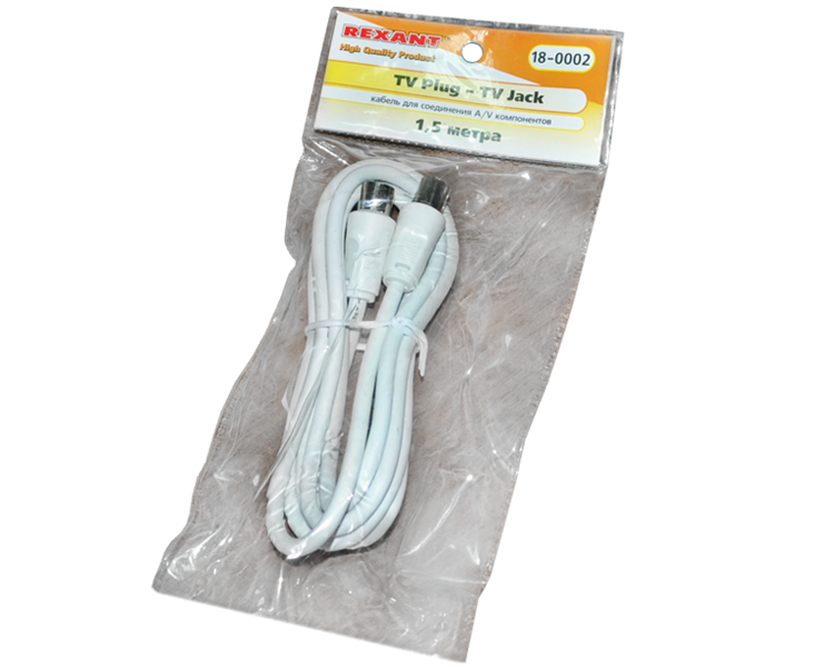 C одной стороны шнура располагается штекер TV-разъема, с другой гнездо TV-разъема. Корпус разъемов выполнен из качественного, легкого и прочного пластика. Контакты никелированы и обеспечивают высокий уровень передачи сигнала к оборудованию. Цвет шнура – белый, а длина составляет 1.5 метра.