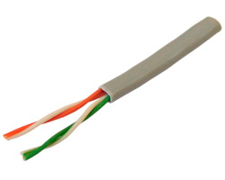 Неэкранированная витая пара, материал проводника алюминий плакированный медью CCA диаметром 0,5 мм. (24 AWG). Материал оболочки – ПВХ (PVC).